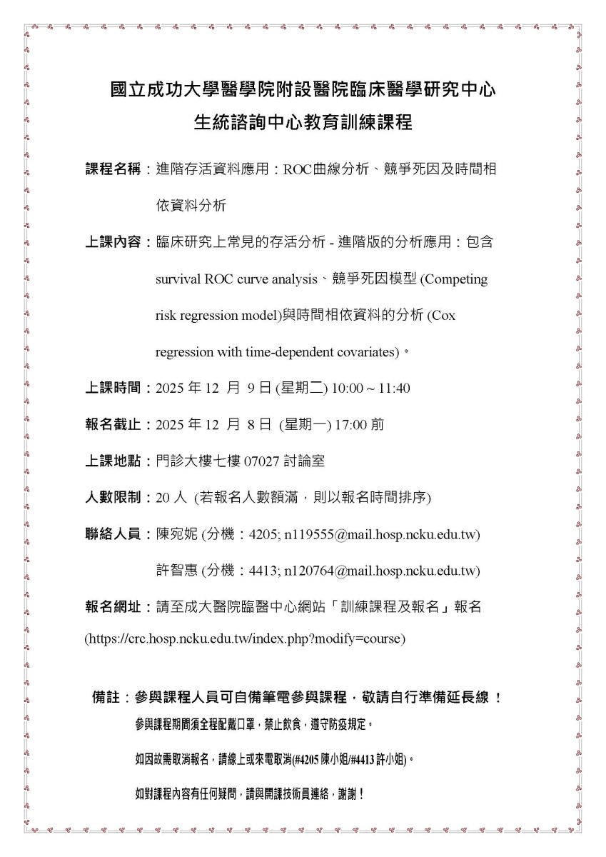 進階存活資料應用:ROC曲線分析、競爭死因及時間相依資料分析